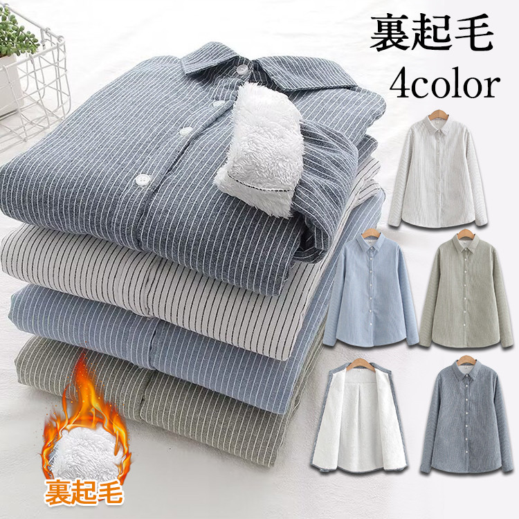 シャツ 裏起毛 厚手 レディース 長袖 防寒 保温 暖かい トップス 冬 冬服 冬コーデ 寒さ対策 インナー カジュアル