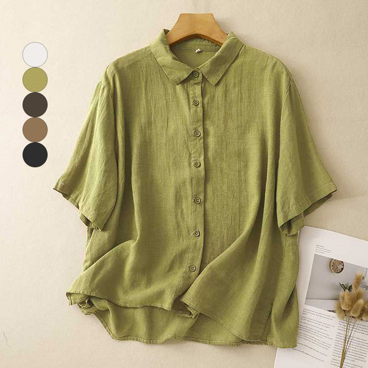 シャツ 半袖 レディース トップス ブラウス 半袖シャツ 前開き ゆったり 無地 シンプル カジュアル