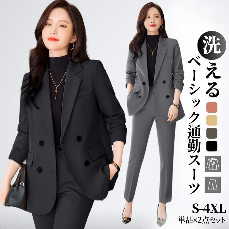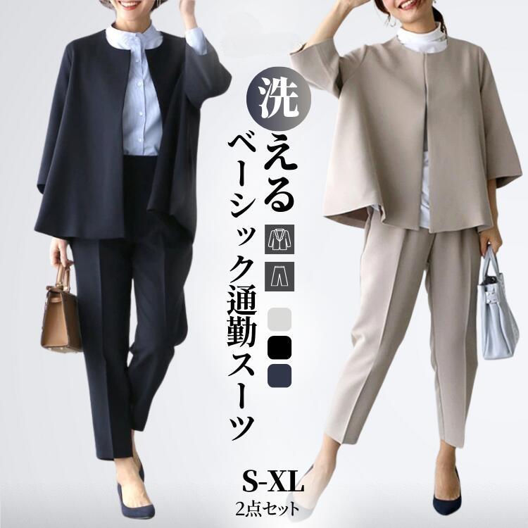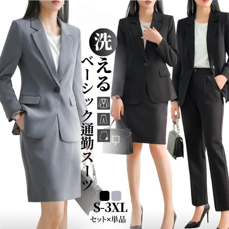 洗えるスーツ レディーススーツ着痩せ OL 通勤 フォーマル 卒業式 結婚式 二次会 上品 女性 30代40代50代 大人 きれいめ 3点セット 制服 S M L XL 2XL 3XL 4XL 長袖ジ