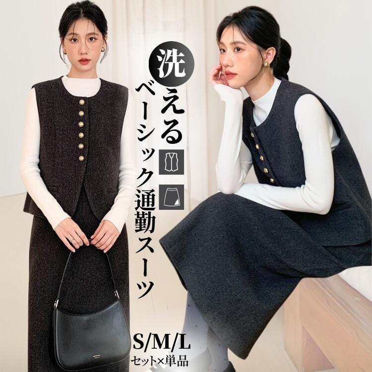 ベスト3点セット レディース 春夏秋 ベスト スカート インナー 通勤 フォーマル ノースリーブ トップス アウター 羽織り オフィスカジュアル きれいめ ゆったり 大人 シンプル 着