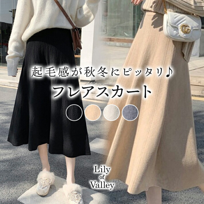 暖かみのある起毛感が秋冬にピッタリの ミモレ丈 ウール フレア スカート レディース ふんわり 起毛 フレアスカート ボトムス ロングスカート ロング丈 膝下 ライン 韓国 ハイウエスト