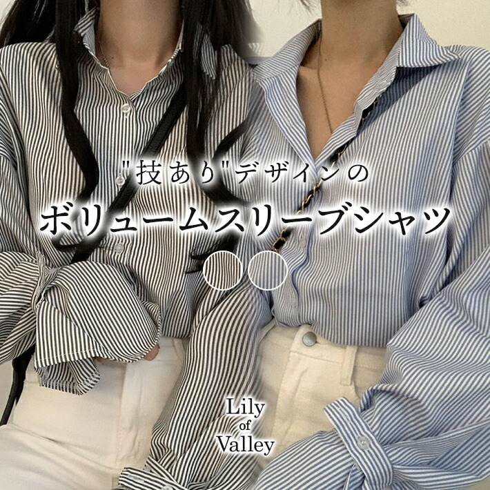 さりげない技ありデザインで周囲と差がつく ボリュームスリーブ ストライプ シャツ レディース フリル 袖コンシャス ブラウス きれいめ オフィスカジュアル 韓国 大きいサイズ