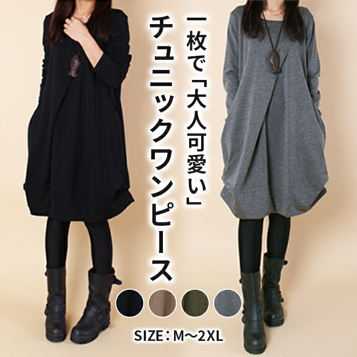 一枚で大人可愛い♪秋冬から春の季節にぴったりな ひざ丈 膝丈 長袖 ロング 無地 レトロ 黒 ブラック グレー 緑 グリーン 茶色 ブラウン
