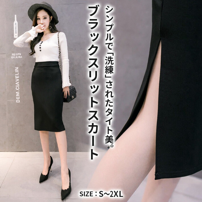 すっきりしたシルエットが女性らしいを引き立ててくれる♪ Iライン ブラック タイトスカート スリット レディース ひざ下 フォーマル オフィス カジュアル ペンシル 春 夏 秋 冬 黒