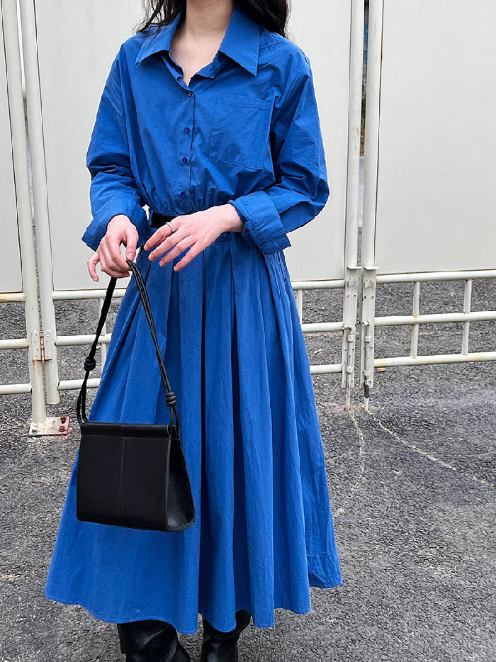 ワンピース ロングワンピース シャツワンピース 綿100% 長袖 無地 ワンピ シャツワンピ ロング ロングワンピ コットン きれいめ 春 夏 Aライン スッキリ シンプル カジュアル 通勤 OL
