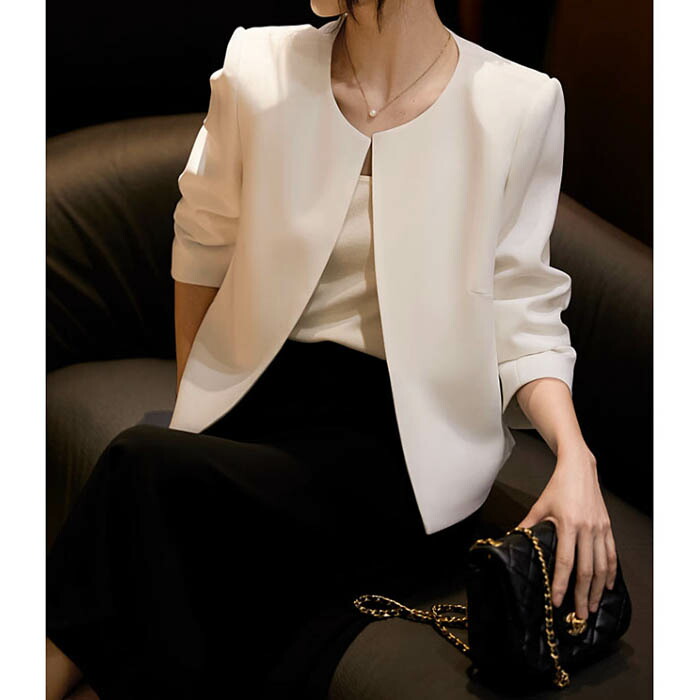 ノーカラー ジャケット レディース 春 秋 ショート丈 長袖 コート アウター 羽織り トップス カーディガン とろみコート スーツジャケット ノーカラー 着回し力 レディース 韓国風