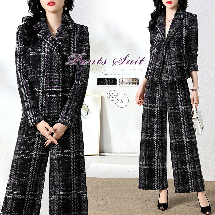セットアップ レディース 2点セット パンツスーツ スーツ ジャケット ワイドパンツ 春 秋 ビジネススーツ テーラードジャケット 着痩せ シンプル カジュアル 女性らしい きれいめ