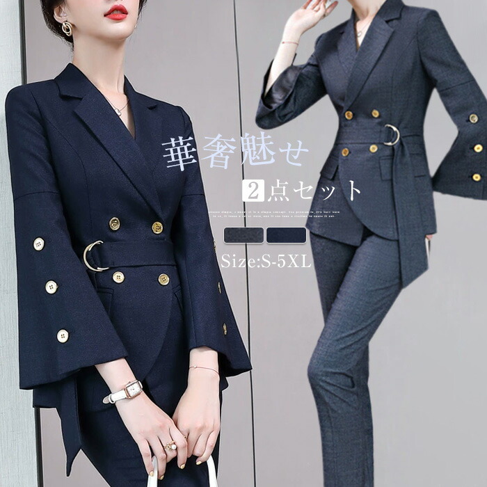 パンツスーツ セットアップ レディース 2点セット スーツ ジャケット ワイドパンツ 春 秋 ビジネススーツ ジャケット 着痩せ シンプル カジュアル 女性らしい きれいめ お洒落
