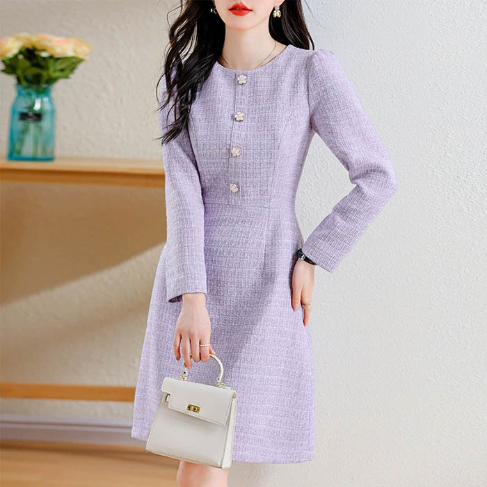 ワンピース レディース ツイード 春 秋 ドレス 膝丈 ツイードワンピース 長袖 体型カバー 可愛い 大きいサイズ おしゃれ カジュアル 着痩せ 通勤 通学 お出掛け お食事会 卒業式 入学式