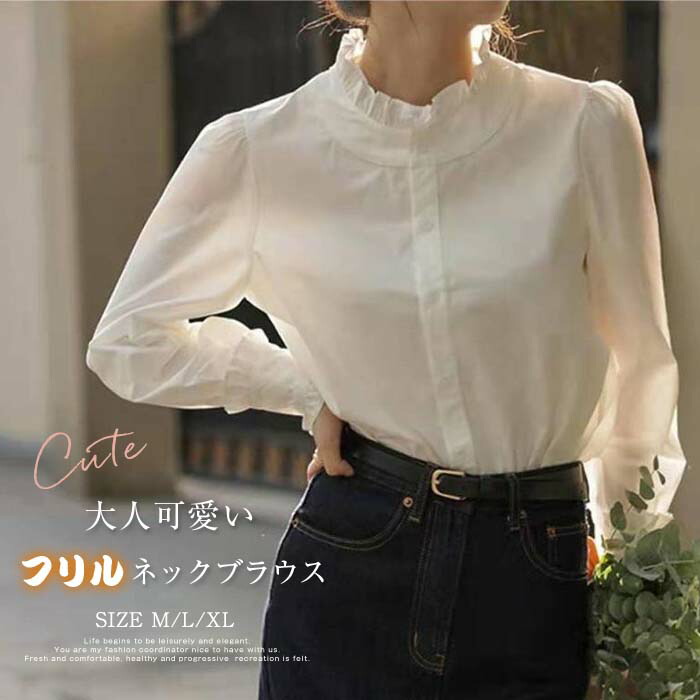 ネックフリル シャツ ブラウス 長袖 シャツブラウス レディース トップス 春秋 無地 フォーマル シャツ 秋トップス ブラウス スーツ インナー ワイシャツ ビジネスシャツ 白