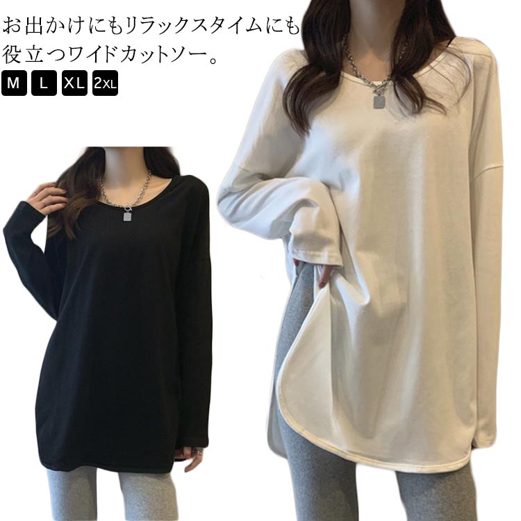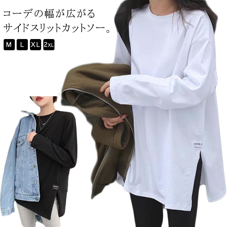 お尻が隠れる ルーズなロン トップス カットソー ロン 長袖 シャツ ロング チュニックレディースファッション トップス シャツ カットソー