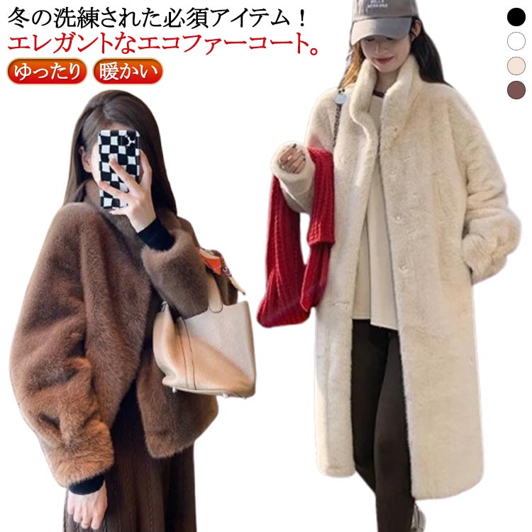 ファーコート レディース コート フェイクファー 秋冬コート ふわふわ 体型カバー 暖かさ 防寒 アウター カジュアル エレガント