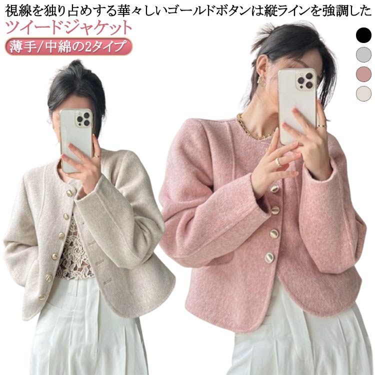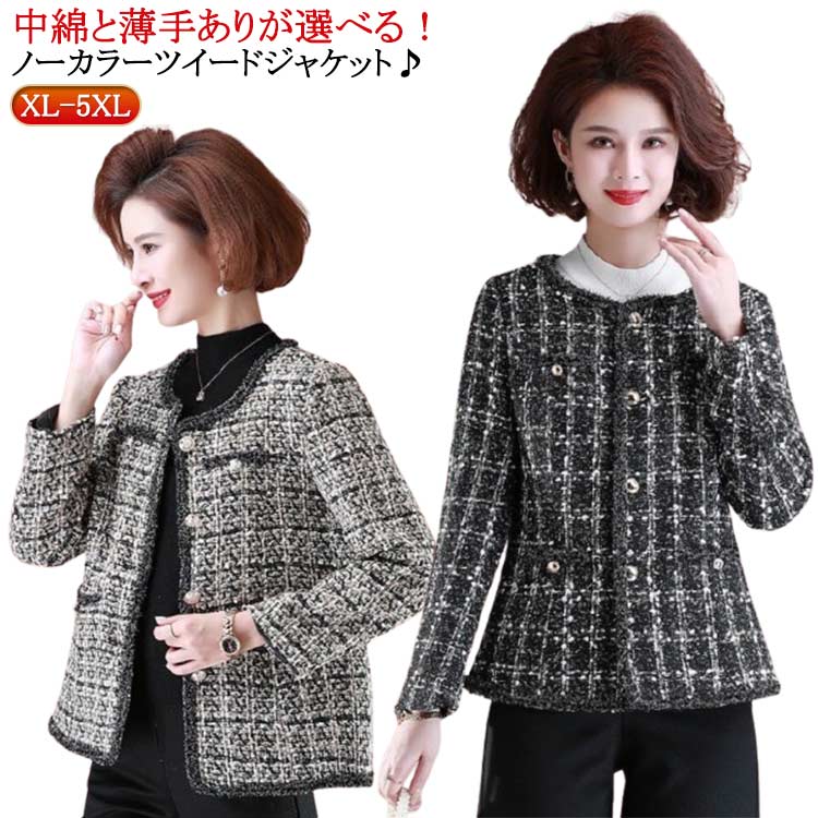ツイード ジャケット ノーカラージャケット ツイード アウター ノーカラー 長袖ジャケット フォーマルジャケット