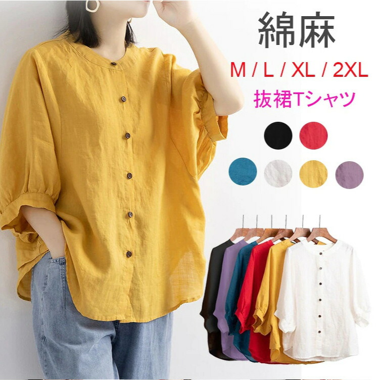 レディース リネンコットン シャツ 夏新作 ランタンスリーブ ヴィンテージ ルーズフィット ミディスリーブ おしゃれ 涼しい