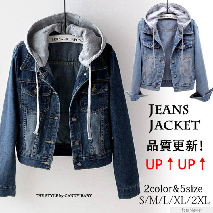 デニムジャケット レディース ショート丈 春秋新作 長袖 フィットカット フード付き ジャケット トップス