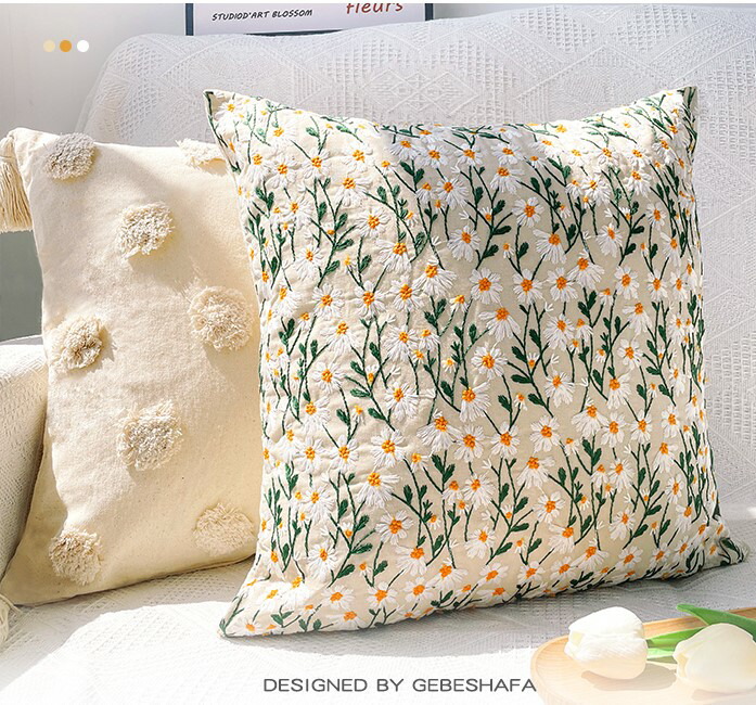 花柄ドットクッションクッションカバーカバー白ホワイトベージュフラワーもこもこ大きい大きめ45cm×45cm北欧おしゃれ可愛いデザイン洗える四角正方形韓国雑貨インテリア北欧ふわふわフリンジ刺繍