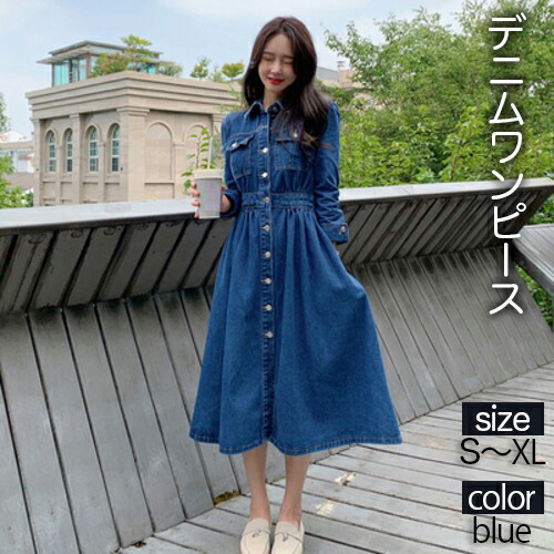 ワンピース レディース デニム ワンピ シャツ 大人 可愛い ガーリー カジュアル ラブリー ラフ ウエストマーク 10代 40代 セクシー スカート 長袖 ロング丈 オシャ