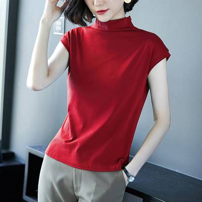 カットソー トップス レディース 半袖 夏 無地 7色展開 ハイネック 休日 お出かけ コーデ 普段使い 通勤 着回し ファッション おしゃれ オフィスカジュアル きれ
