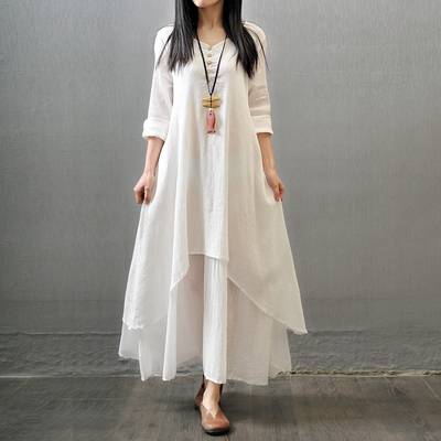 ワンピース レディース ロング丈 長袖 Vネック エスニック アジアン マタニティ 大人 可愛い お洒落 きれいめ 上品 ママ お出かけ 女子会 旅行 デート カジュアル