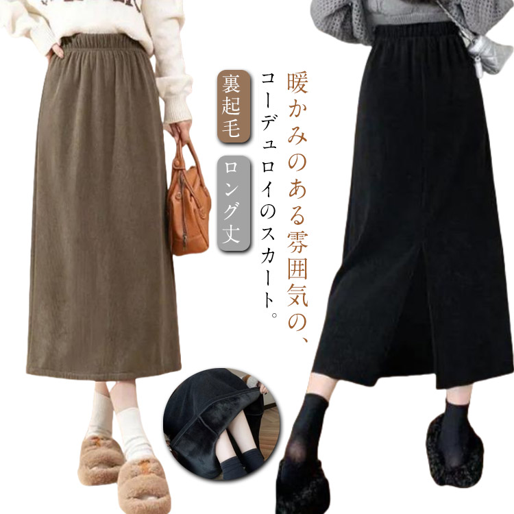 裏起毛 スカート ロング丈 裏ボア あったか 体型カバー 秋冬 コーデュロイ ロング丈 スリット 裏起毛スカート