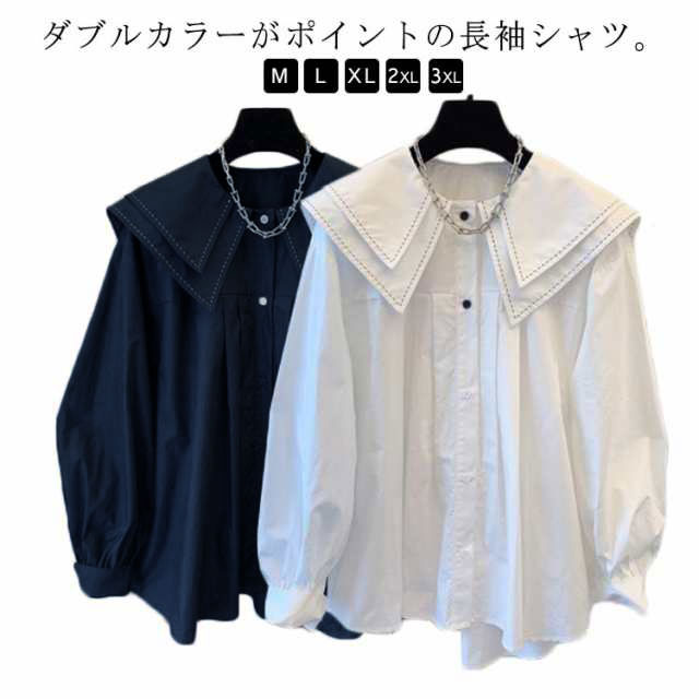 セーラーカラーブラウス ダブル襟 セーラーカラー シャツ トップス 体型カバー 大きめ襟 オーバーサイズ