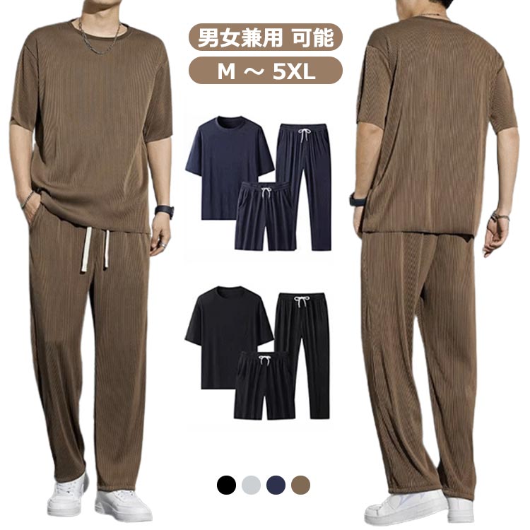セットアップ ルームウェア 大きいサイズ 韓国 半袖 春夏 カジュアル メンズ メンズ ワンマイルウェア 夏 メンズ 光沢感 ワイドパンツ 冷感接触 部屋着