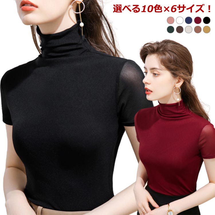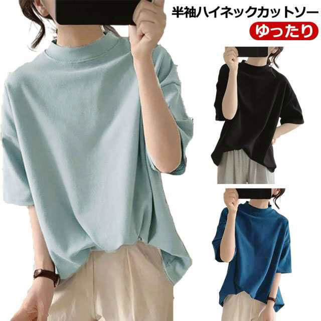 春夏 半袖 インナー キレイめ ハイネック カットソー 日焼け対策 シンプル 無地 ゆったり 薄手 レディース