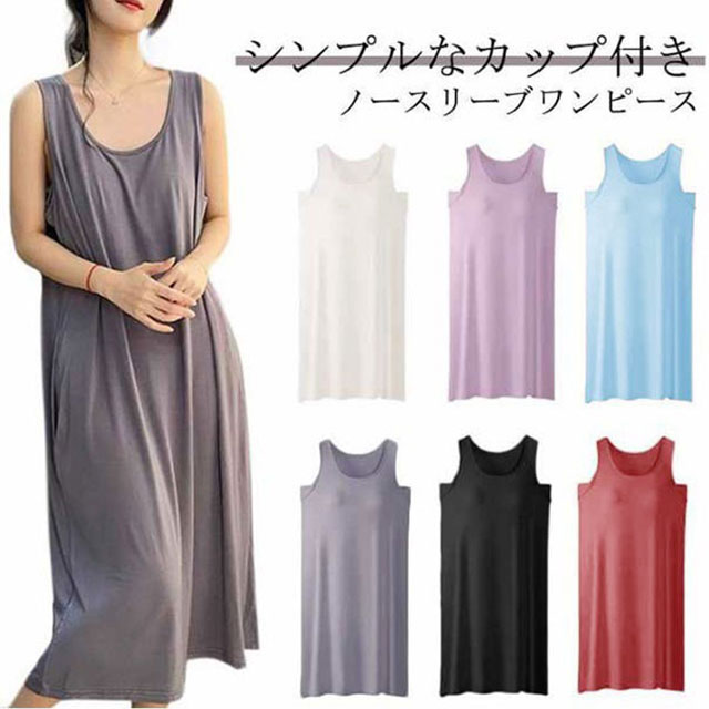 ルームウェア ワンピース レディース 1枚で着られる ノースリーブ 部屋着 ロング丈 カップ付きレディースファッション ワンピース