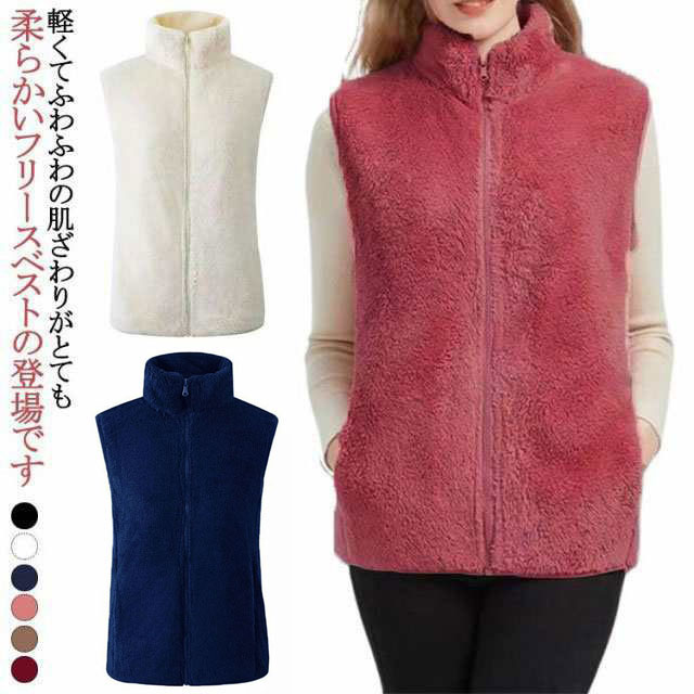 ボアベスト ボアジャケット レディース フリース ジャケット ノースリーブ フリースベスト アウター 暖かい あたたかい 立ち襟 インナーベスト