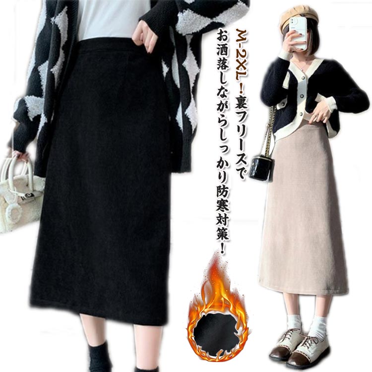 コーデュロイスカート ウエストゴム 体型カバー 裏起毛 暖かい コーデュロイ スカート ラインレディースファッション ボトムス スカート