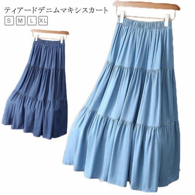 デニムスカート レディース ティアードスカート フレアレディースファッション ボトムス スカート