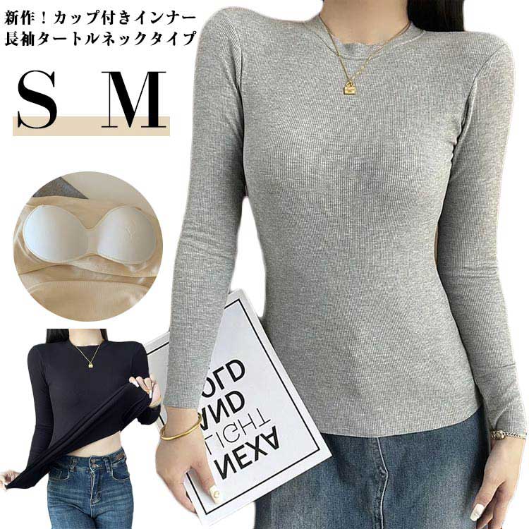 カップ付き Tシャツ 長袖 インナー ブラトップ 暖か 裏起毛 レディース ノンワイヤー タートルネック ハイネック ルームウェア 部屋着 トップス 無地 S M 大きいサイズ 下着 速乾 ストレッチ