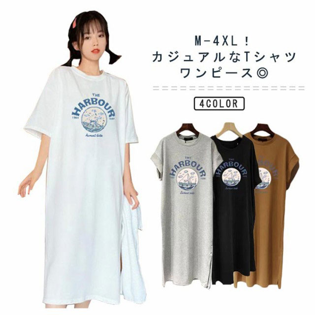 Tシャツ ワンピース 半袖 スウェット スリット プルオーバー ロング マキシ丈 リラックスウェア 着痩せ オーバーサイズ ナチュラル カジュアル 着回し