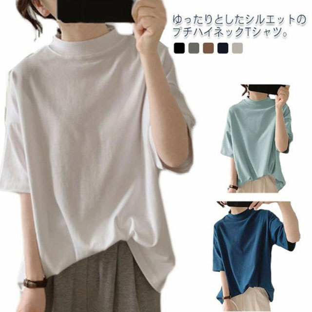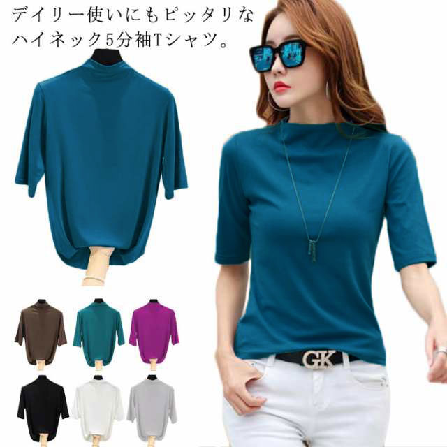 五分袖 レディース 半袖tシャツ カットソー 5分袖 タートルネック 秋 半袖シャツ トップス tシャツ ゆったり 大きいサイズ 無地 おしゃれ 春夏 春 夏 ハイネック