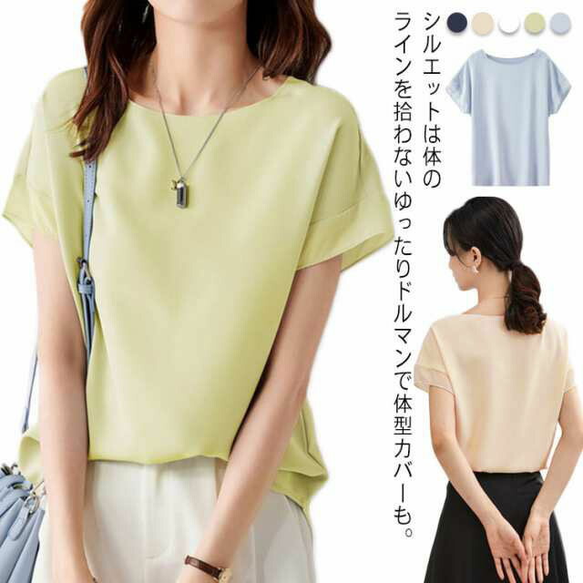 シフォン 半袖 ブラウス レディース 夏 ラウンドネック トップス ドルマンスリーブ 薄手 おしゃれ 高級感 仕事 通勤 大人カジュアル 涼しい 体型カバー オフィス 大きいサイズ ゆったり プルオー