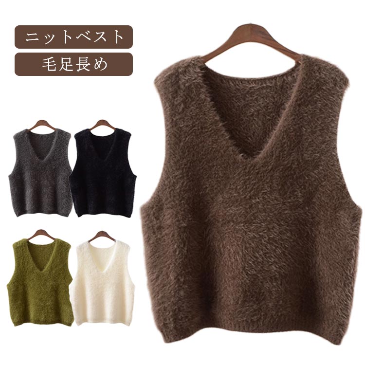 シャギー ベスト ニットベスト レディース 秋冬 Vネック ベスト プルオーバー ノースリ ニットレディースファッション トップス ベスト ジレ