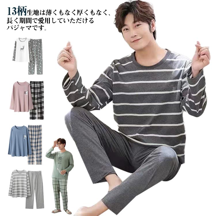 パジャマ メンズ ナイトウェア ルームウエア 長袖 秋 春 ボーダー 上下セット セットアップ 普段着 部屋着 寝間着 パジャマ 誕生日 父の日 敬老の日 プレゼント ギフト