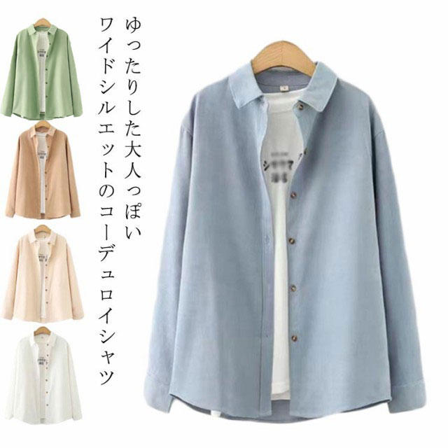 コーデュロイ 長袖シャツ カジュアルシャツ ネルシャツ 細畝コーデュロイ カラーシャツ 大人可愛い コーデュロイシャツ