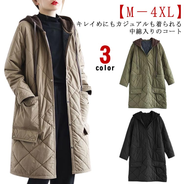 キルティング コート ロングコート フード キルティングコート 厚手 防寒コート 中綿コート おしゃれ 大きいサイズ