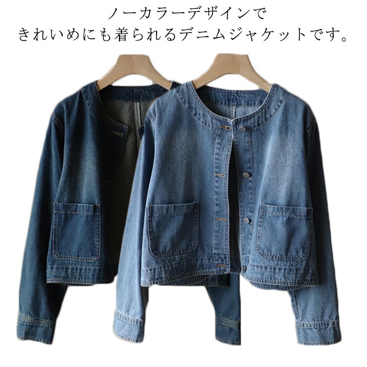 ジャン デニムジャケット 春アウター ノーカラー 大人カジュアル 美シルエット ヴィンテージ感 小顔効果