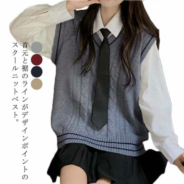 スクールベスト ネックベスト ケーブル編み ニットベスト スクールセーター オーバーサイズ かわいい