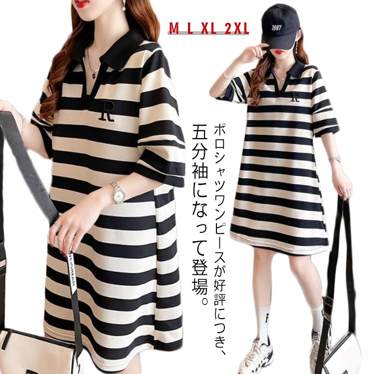ゴルフワンピース レディース ポロワンピース 半袖 ボーダー柄 ゴルフウェアレディースファッション ワンピース