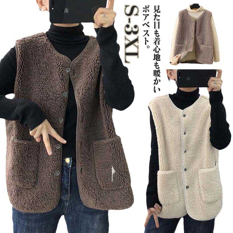 年代を超えて大人が着られるボアベスト ボアベスト ふわふわ もこもこ あったか 軽量 防寒 ノースリーブ ジャケット コート シープボア調