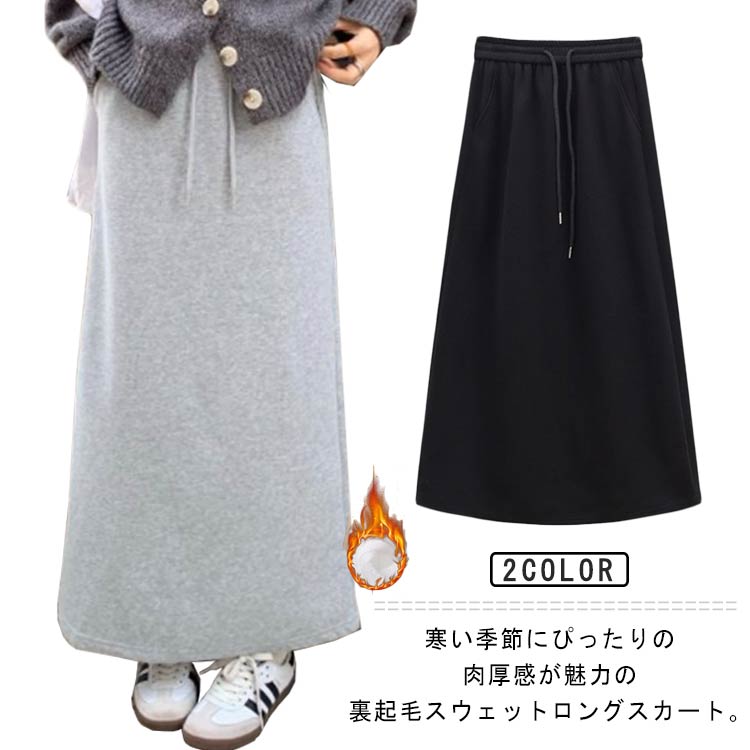 オシャレに防寒可能 あったか裏起毛 裏フリース スウェットロングスカート マキシ丈 スカート ポケット ウェストゴム スウェットスカート