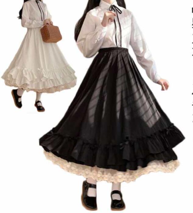 スカート ロリータ風 ロリータ スカート ロング 2点セット 森ガール フリル 可愛い フェミニン ガーリー レース かわいい ふんわり