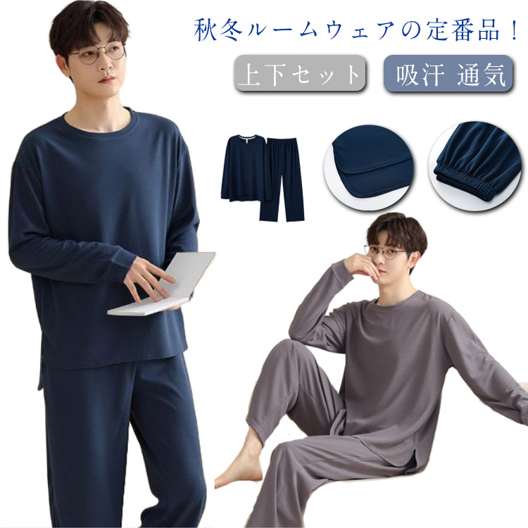 パジャマ メンズ 秋用 長袖 ルームウェア 綿 男性用 寝巻き 上下セット 部屋着 長袖Tシャツ ズボン 男性 男性パジャマ