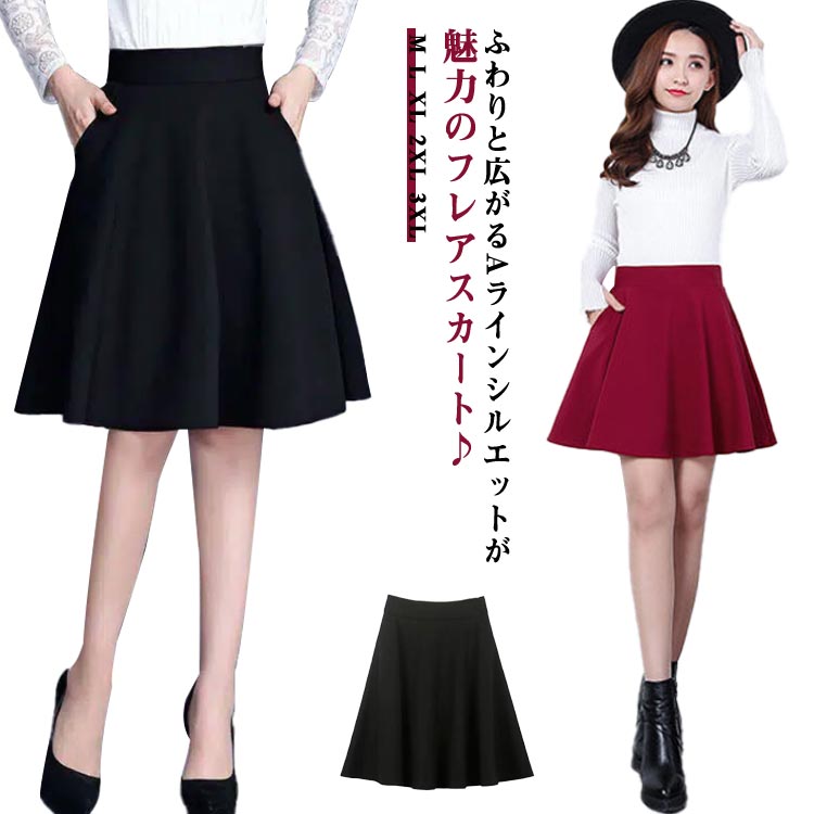 45 55 スカート ブラック ミニスカート フレア スカート ポケットとインナー付 フレアミニスカート