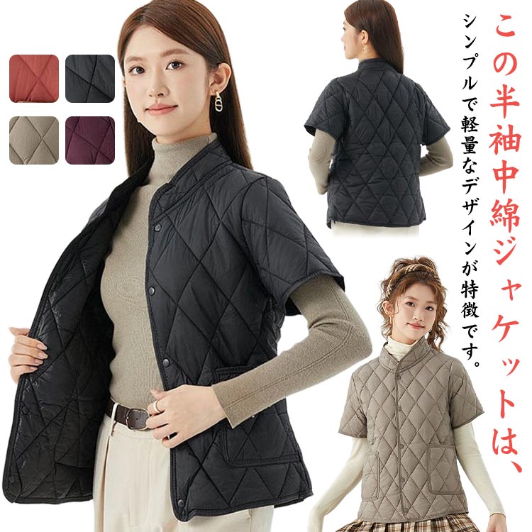 保温効果と便利さを両立 半袖 スタンドカラー 裏ボアジャケット インナージャケットレディースファッション コート ジャケット