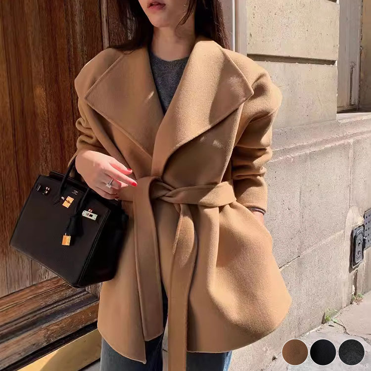 コート レディース ショート丈 アウター ショールカラー ガウン 秋 冬 秋冬 ポケット エレガント フード ベルト おしゃれ シンプル きれいめ ホワイト ブラック ベージュ 韓国