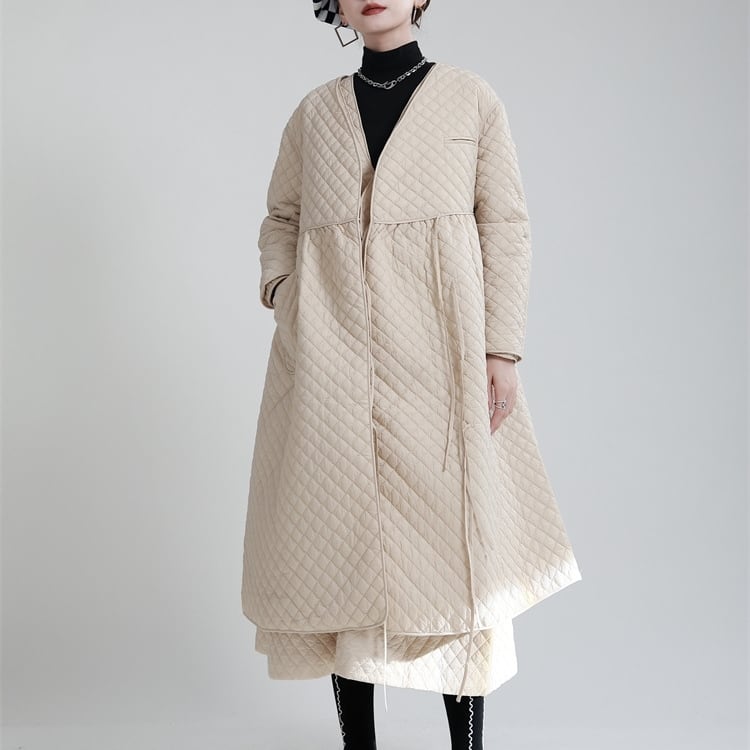 中綿コート レディース アウター ダウンコート ノーカラー キルティング 薄手 韓国風 幾何学模様 中綿ダウンコート ロング丈 軽い 軽量 冬服 厚手 アウター 暖かい 大きいサイズ スリム